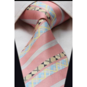 Tags: stropdas, roze, blauw, beige, geel, fantasydessin, 100%zijden, handgeweven