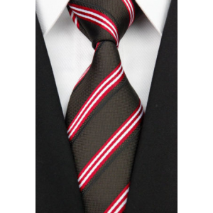 Tags: stropdas bruin rood wit brede streep motief 100% zijden handgeweven