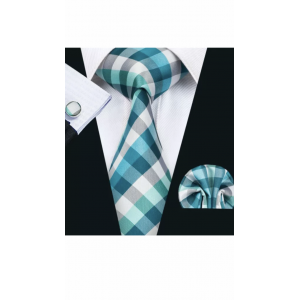 3delige set stropdas pochet manchetknopen tinten blauw wit en zwart Ruit